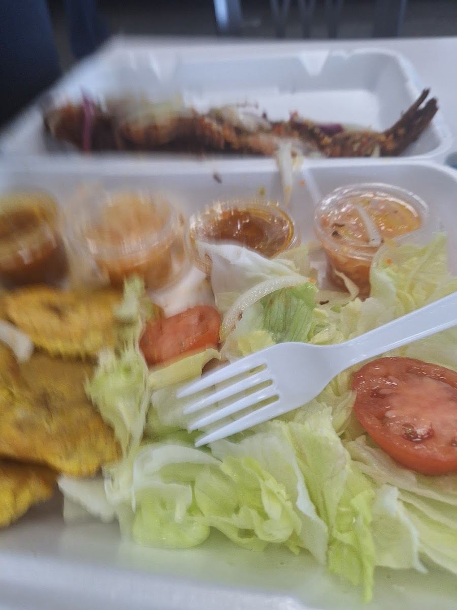 Stopped by after church; ordered the brown stew and the fried pork chunks. Both served with rice & pigeon peas, sweet plantains, and salad. Did not realize it was Haitian food till after perusing the website (there were no menus posted as we arrived during grand opening week). I'd had Jamaican brown stew and this tasted a bit different, but delicious! My friend loved the fried pork chunk meal.